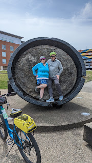 Once you're across the bridge, you'll be riding next to and under a busy interstate. This is a noisy, not terribly enjoyable experience. Fortunately, it only takes a few minutes before you're actually downtown. We didn't take many pictures of our effort to navigate the city streets, since we were kind of busy figuring out where, exactly, we were supposed to go. But, there's barely a quarter mile to cover in order to reach Point State Park. The official mile 0 of the GAP is in front of the park's huge fountain. No doubt it would probably have been quite impressive, if it had been running. Fortunately, the truly important waterworks, the public restrooms, were open, operating, and quite clean.